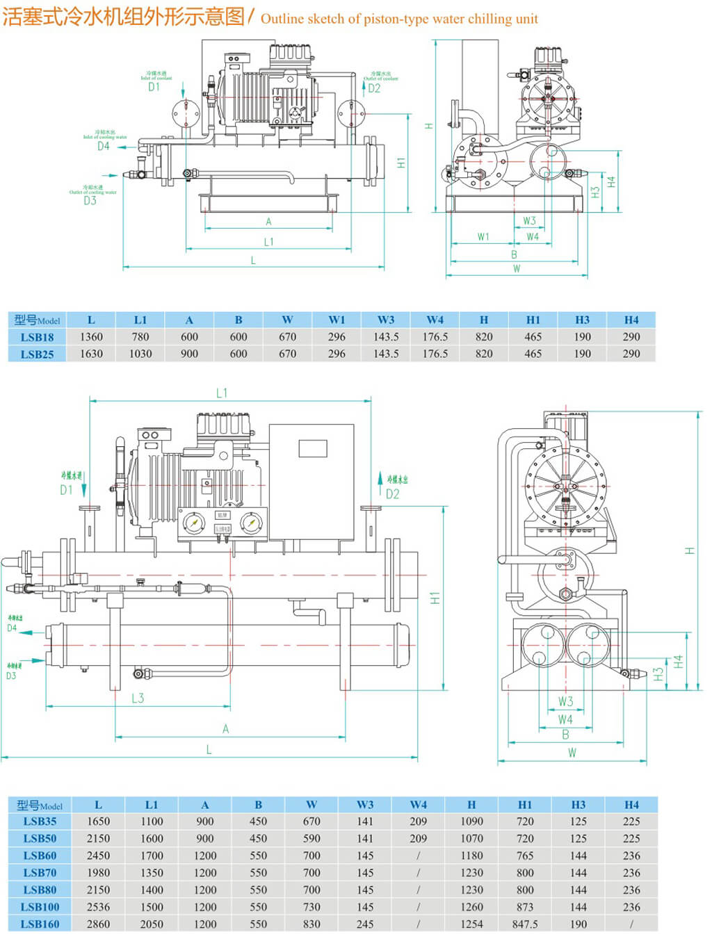 ◆以上數(shù)據(jù)是以R22為制冷劑的機(jī)組性能參數(shù),如需R134a, R407C等其他工質(zhì),敬請(qǐng)聯(lián)系;