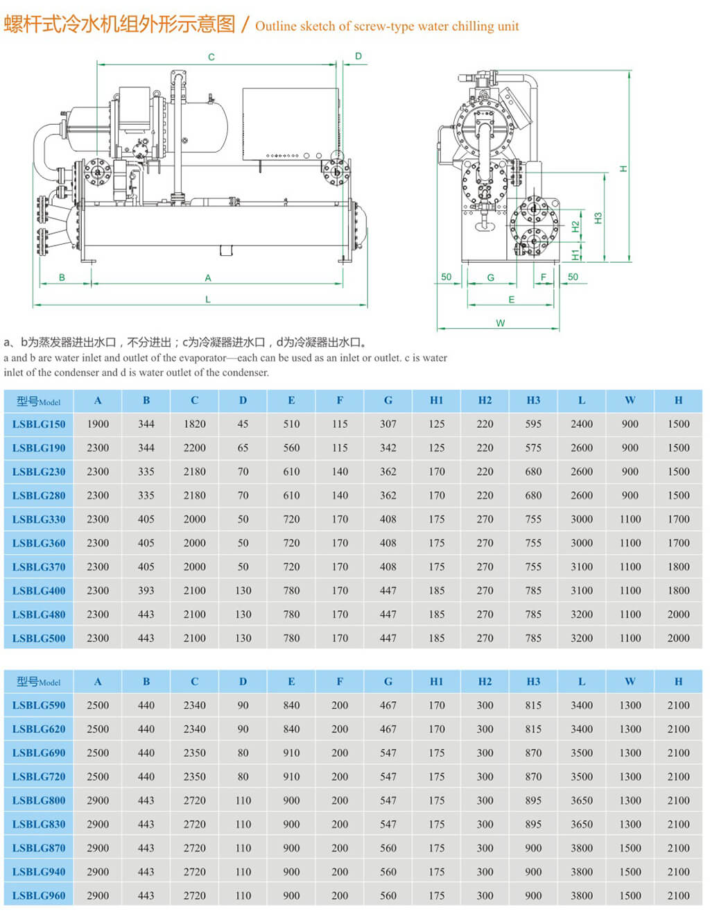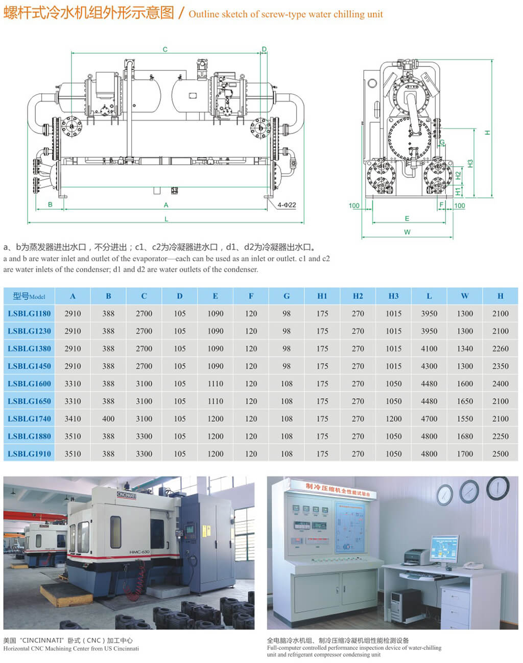 以上數(shù)據(jù)是以R22為制冷劑的機(jī)組性能參數(shù),如需R134a. R407C等其他工質(zhì) ,敬請(qǐng)聯(lián)系;